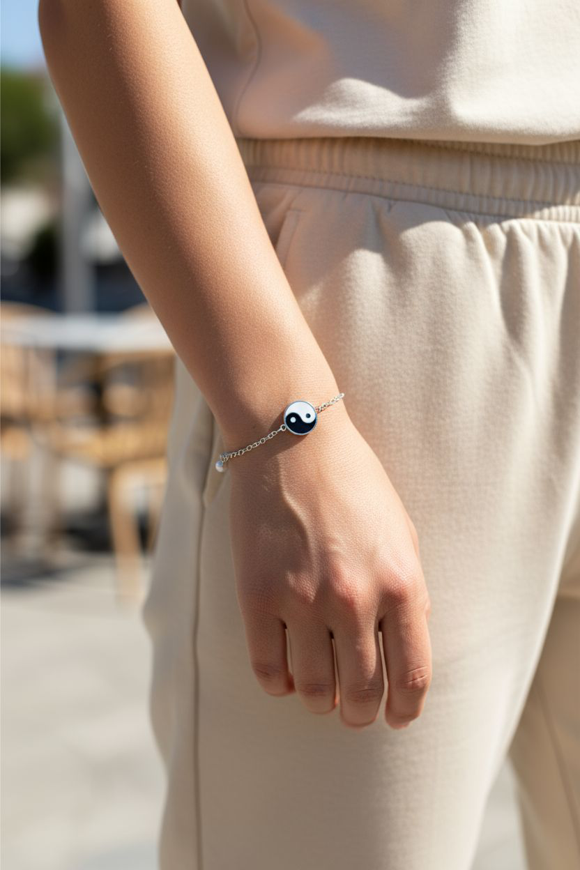 A stainless-steel bracelet that reflects harmony between contrasts — light and dark, strength and calm.