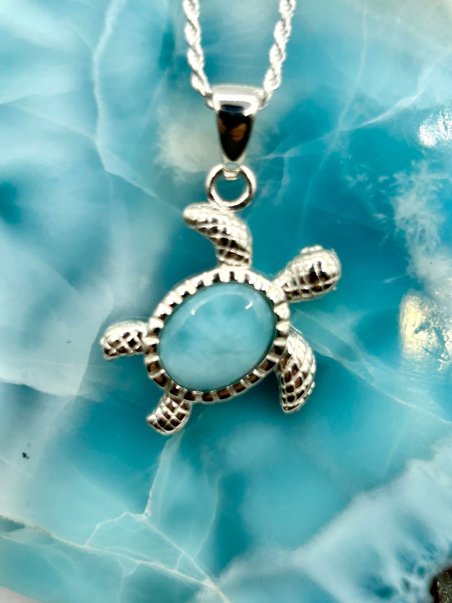 Bring the magic of the Caribbean to your jewelry with our Larimar Sea Turtles. Each piece captures the spirit of the ocean and the charm of these gentle creatures.