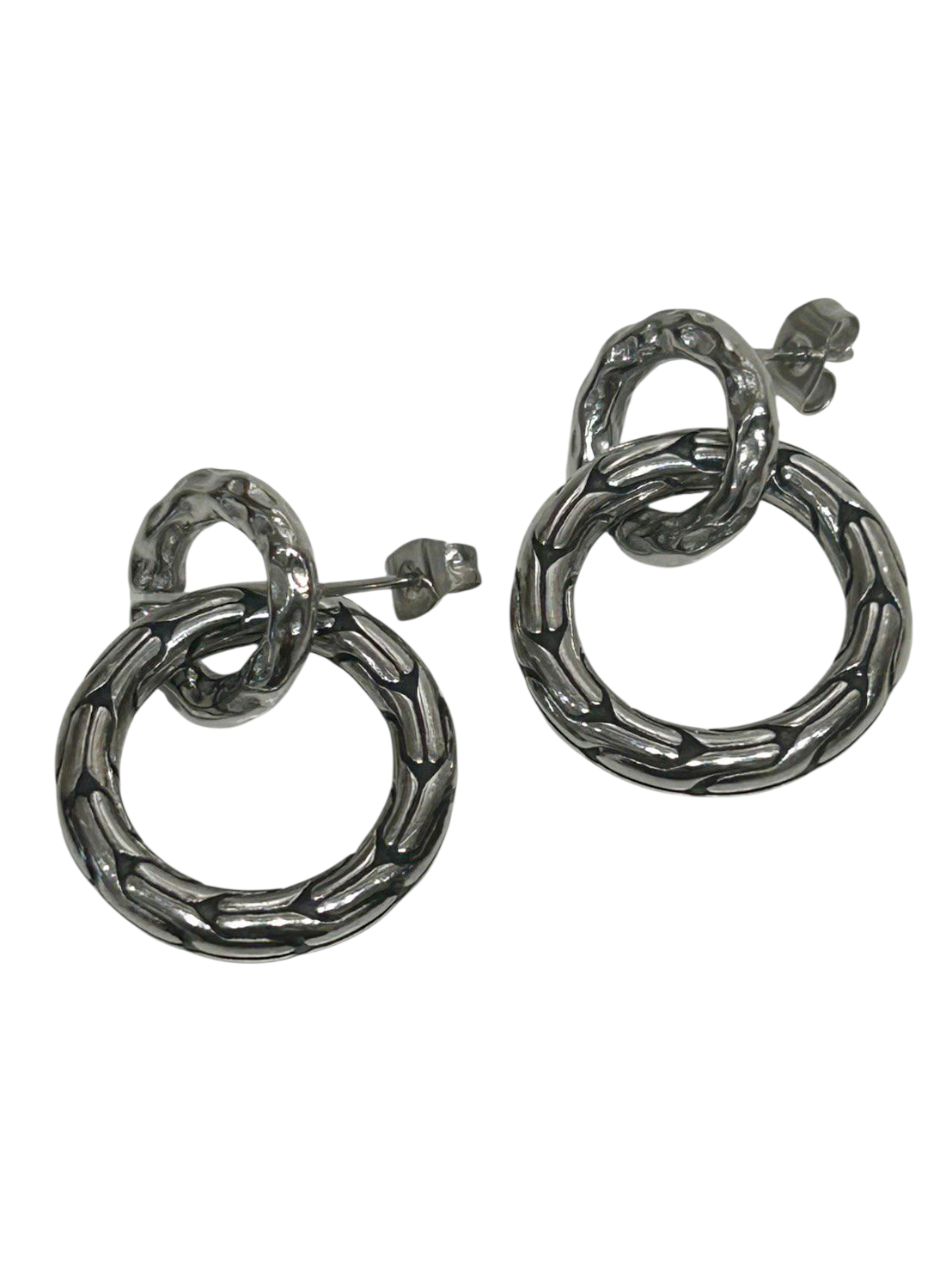 The Forge Dou Earrings blend dual-form design with sculpted metalwork, creating a look that is both modern and powerful. Crafted for those who value strength in simplicity, they elevate every outfit with quiet confidence and refined edge.