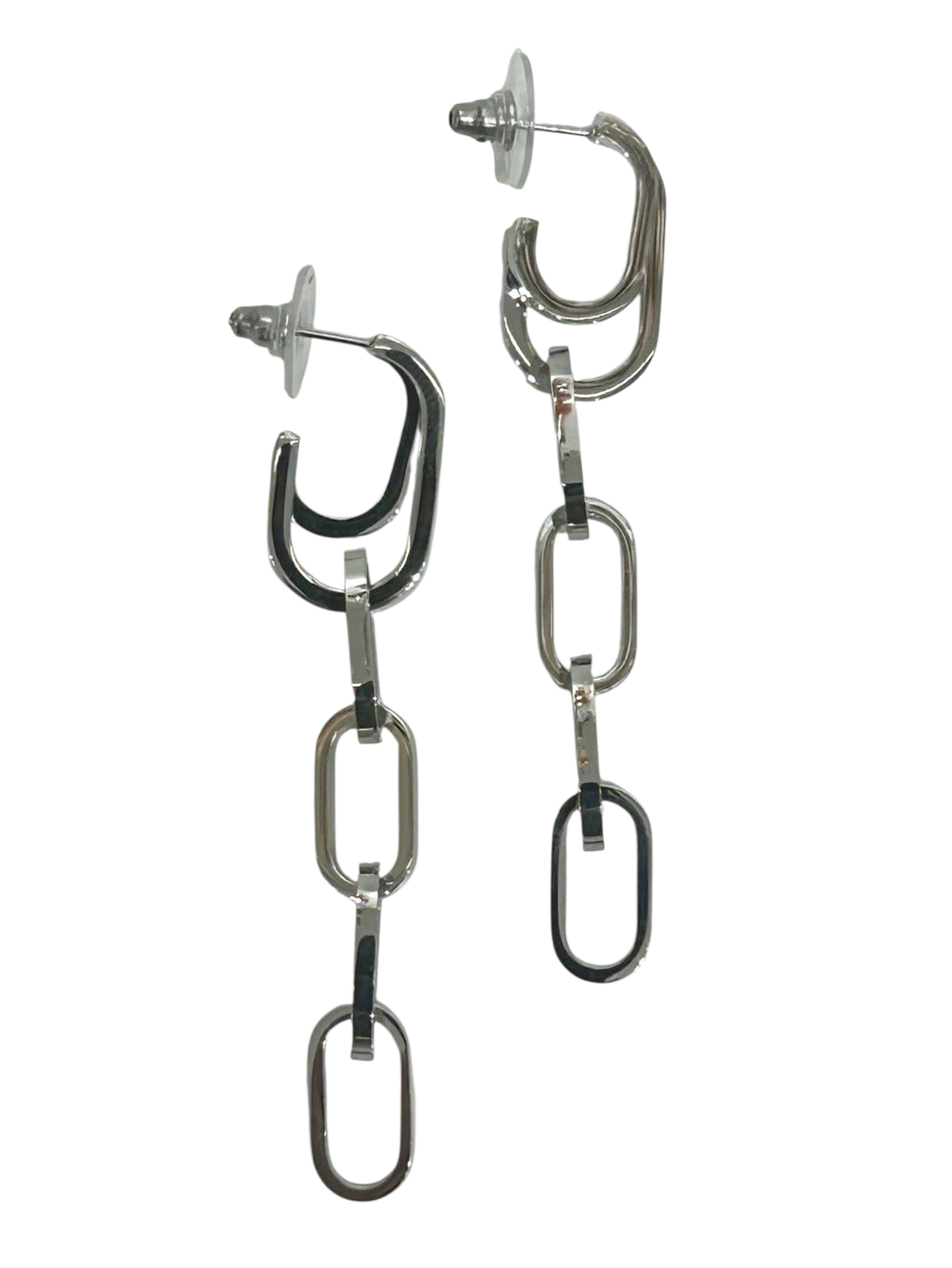 A long, graceful drop of three connected rings — refined, modern, and effortlessly chic. The Linear Chain Trio Earrings elevate your style with a touch of sleek geometry.