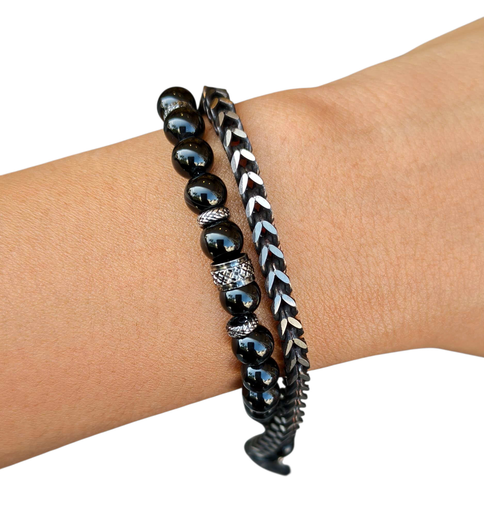 Unveil the allure of mystery within you — Noir Helix Bracelet. A modern design that intertwines strength and elegance in one refined form, made for those who dare to stand out with class.