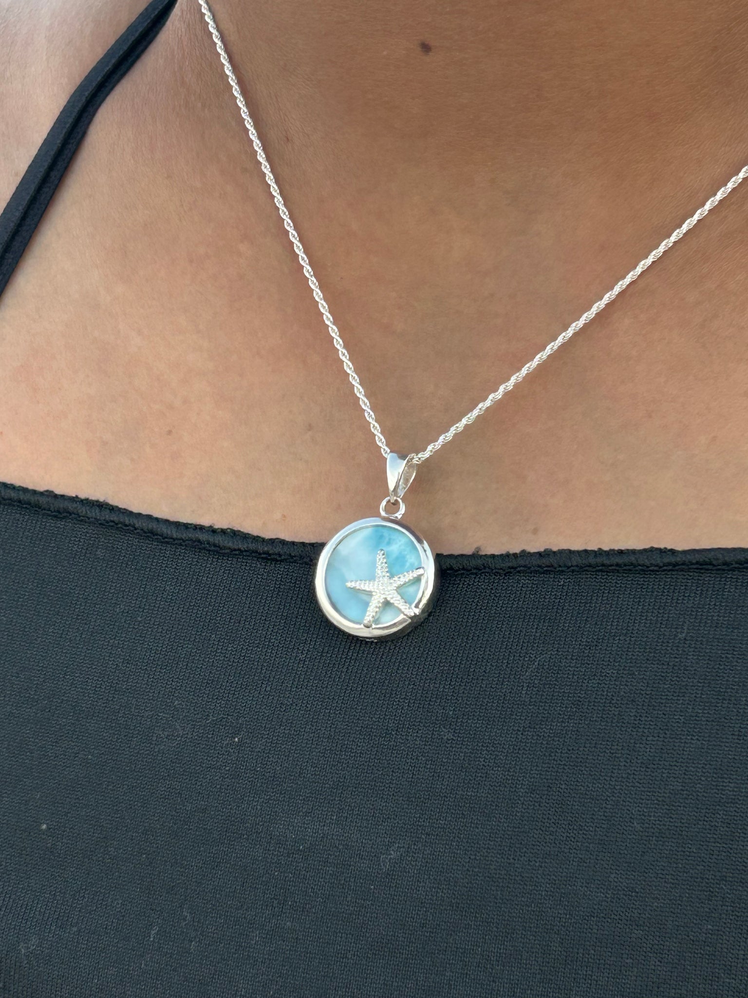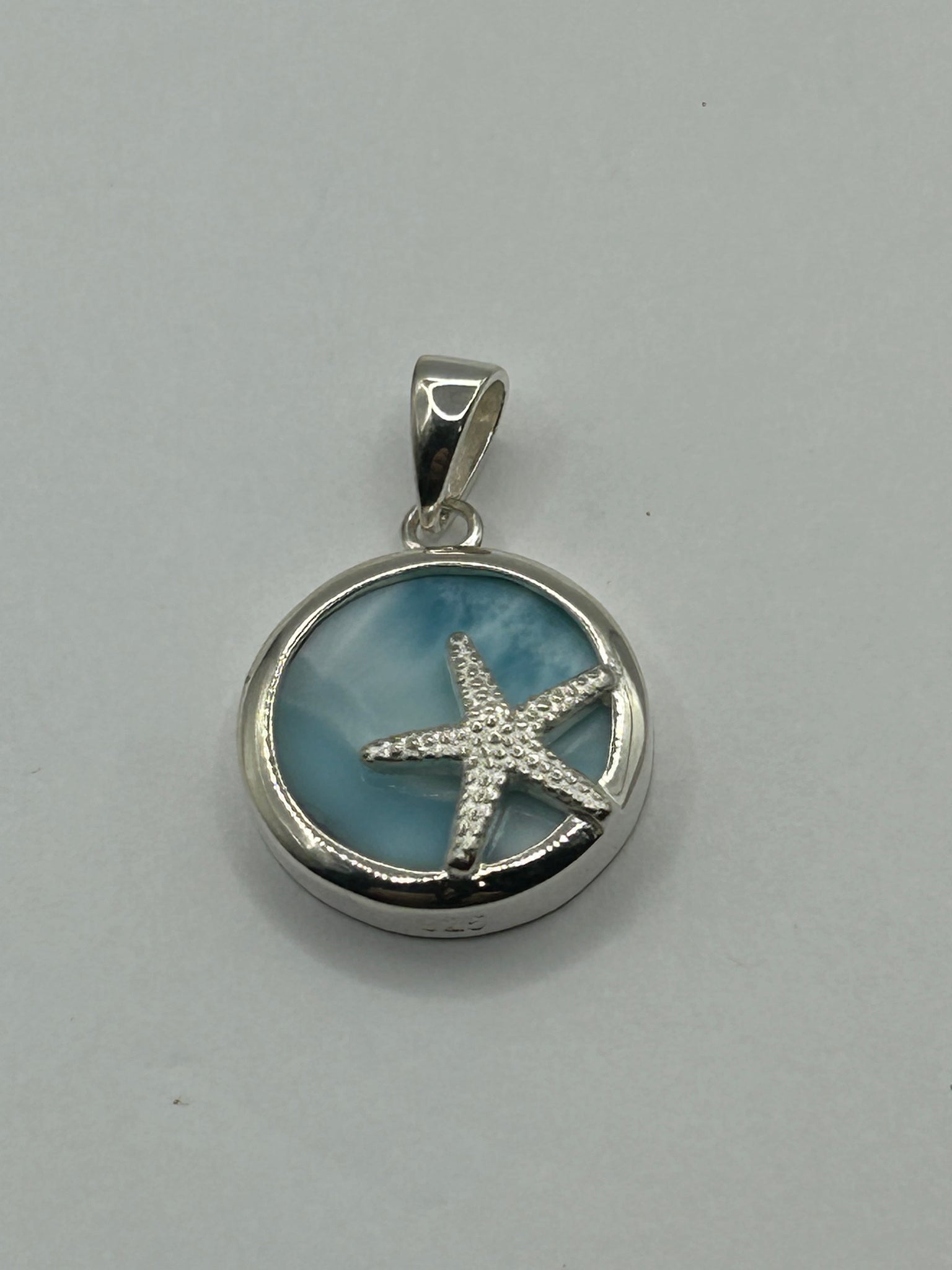 A playful silver earring featuring a small starfish resting on dreamy blue larimar. Like a drop of Caribbean sea you can wear every day.